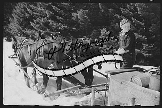 Title: Young daughter of Frank H. Shurtleff sitting outside sugar house where sap from maple trees is boiled down into maple syrup. The Shurtleff farm has about 400 acres, and was originally purchased by grandfather in 1840. He raises sheep, cows, cuts lumber and has been making maple syrup for about thirty-five years. Sugaring brings in around one thousand dollars annually. Becasue of the deep snow this year he only tapped 1000 of his 2000 trees. He expects to make about 300 to 500 gallons this year. North Bridgewater, Vermont