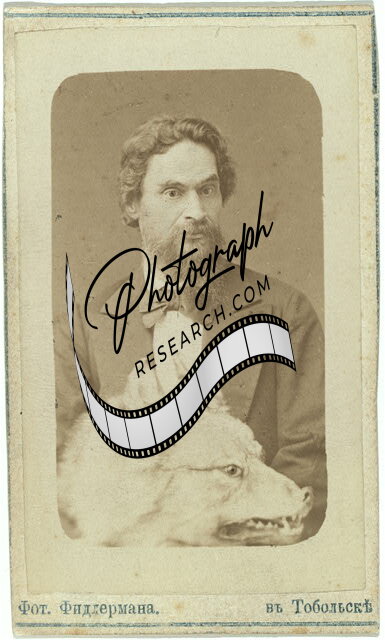 Mr. Znamenski,holding stuffed head of a wolf,Government Official,Russia,c1885