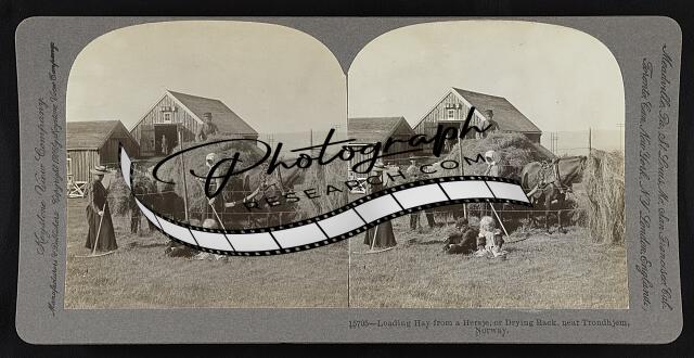 Loading hay from a hersje, or drying rack, near Trondhjem, Norway