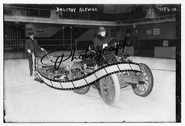 Dorothy Klewer,ice skates,automobile,ice rink,Bain News Service