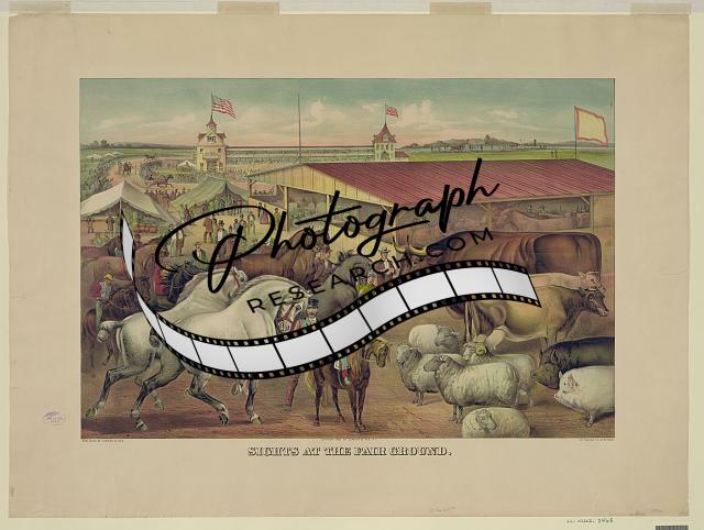 Sights at the fair ground,c1888,livestock,people,sheep,pigs,horses,cows,photo