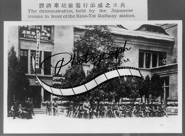 Demonstration,Japanese troops,front,Kiao-Tsi railway station,Jinan,China,1928