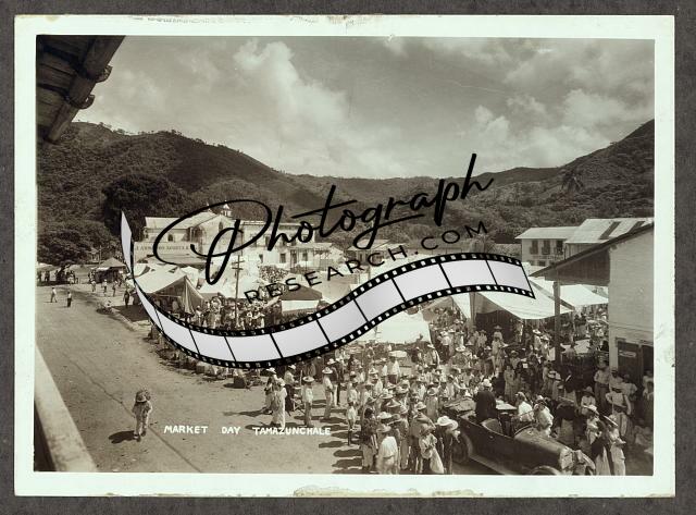 Market day Tamazunchale,Mexico,1920-1947,people outside shopping,tents,vendors