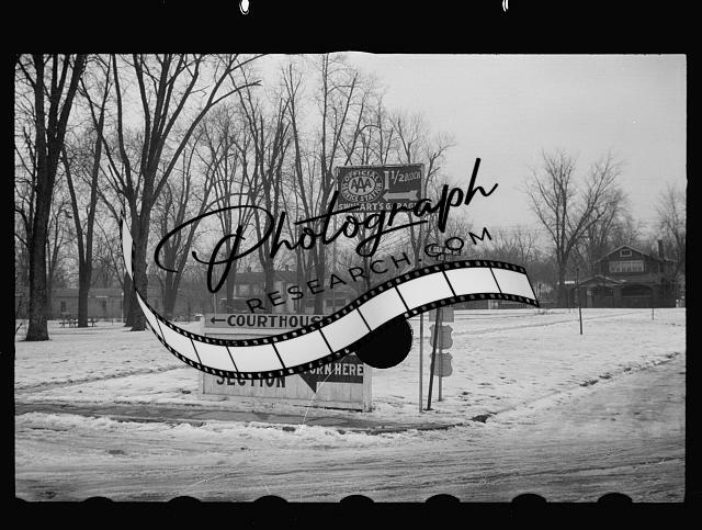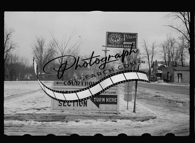 Sign,Kentland,Indiana,IN,Courthouse,Business Section,Snow,United States,FSA,1
