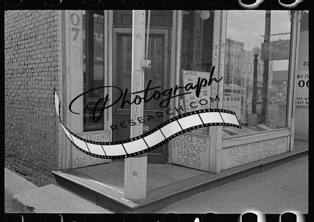 Sign on store,Aledo,Illinois,IL,Farm Security Administration,FSA,May 1938,2