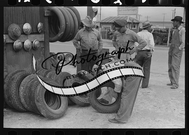 Group of men inspecting secondhand tires for sale,Corpus Christi,Texas,TX,FSA,1