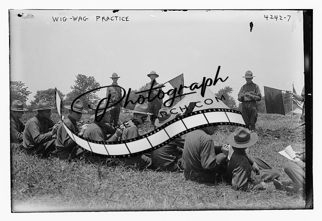 Wig-Wag practice,soldiers,military,tent,flags,Bain News Service