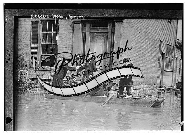 Rescue work,Great Dayton Flood of March 1913,children,women,boat,building