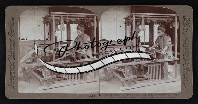 Silk manufacture in Japan. Weaving the beautiful gold brocaded silk