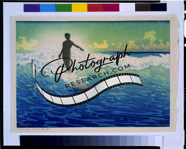 Hawaii,HI,Surfing,Surfer riding wave,Ocean,Charles William Bartlett,c1921