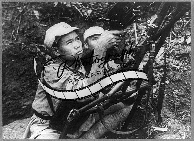 Chinese machine gun crew,pit,Burmese jungle,military,soldiers,World War,1942