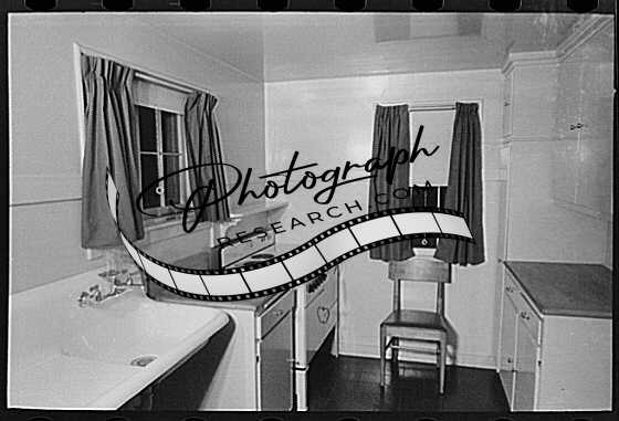 Sink,refrigerator,stove,kitchen of the model house at Greendale,Wisconsin,WI,1