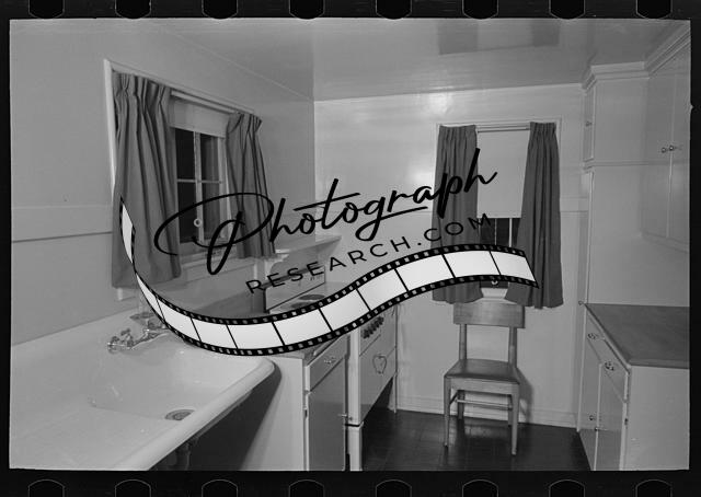 Sink,refrigerator,stove,kitchen of the model house at Greendale,Wisconsin,WI,1
