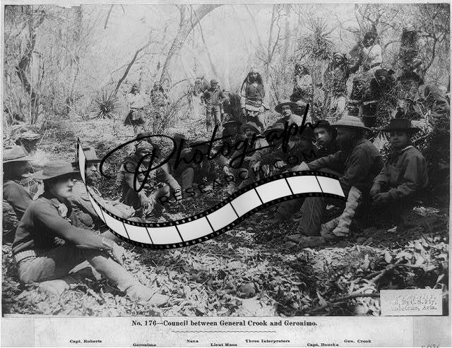 Council between General Crook,Geronimo,1886,Campsite,Apache Indians,Burke,Maus