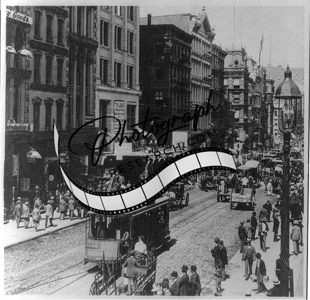 Broadway,Busy Thoroughfare of New York City,NYC,c1897,Trolley Car,Streetlamp