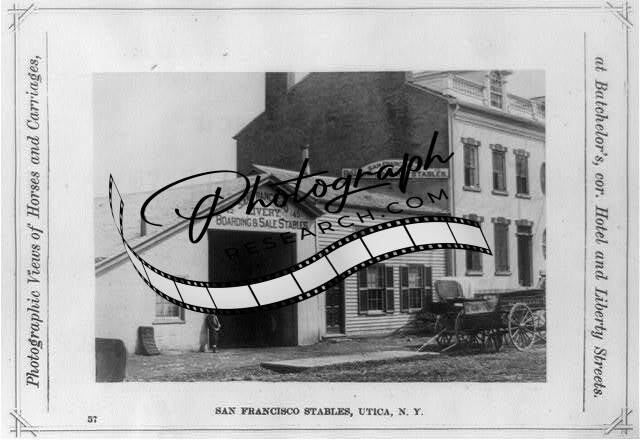 San Francisco stables,buildings,carriage,wagon,horsedrawn,Utica,NY,New York,1874