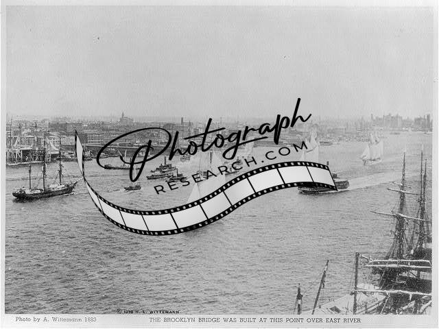 East River Bridge,New York City,NYC,c1885,Brooklyn Bridge,ship,sailboat