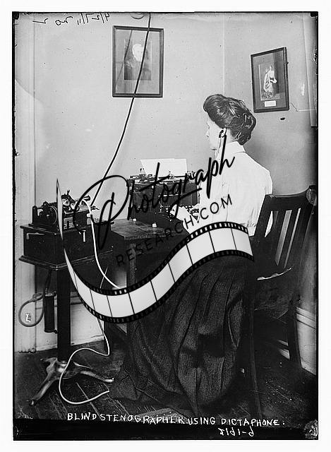 Blind stenographer using dictaphone,April 27,1911,equipment,desk,woman