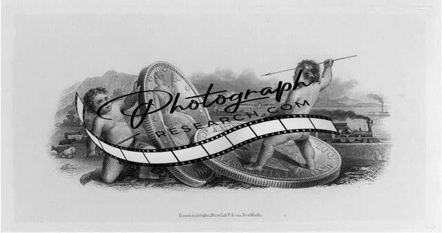 Bank note,cherubs,fighting,spear,sword,coin,shieldRawdon,Wright,Hatch,Edson,1852