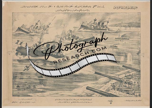 Sinking battleships, Turkish war picture from Konya showing sinking battleships, possibly World War I related.
