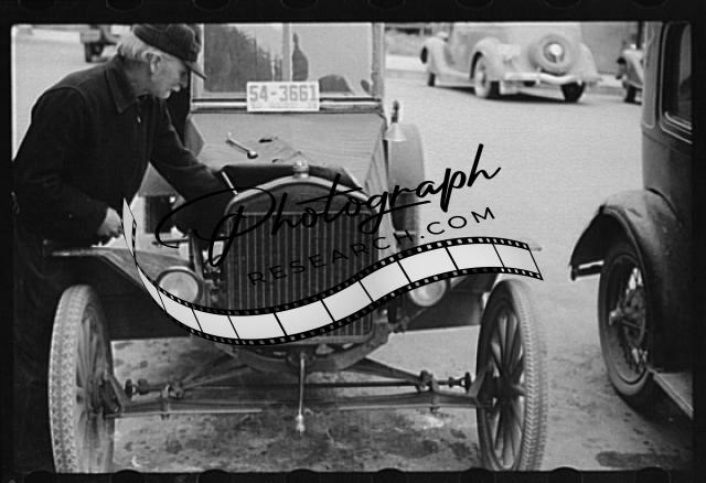 Farmer with 1913 model Ford on main street of Sisseton,South Dakota,SD,FSA