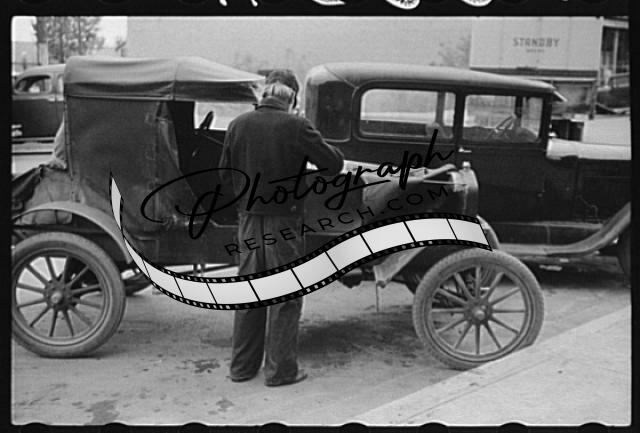 Farmer with 1913 model Ford on main street of Sisseton,South Dakota,SD,FSA