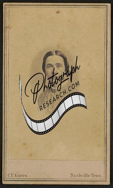 [[Civil War nurse at Hospital No. 1, Nashville, Tennessee, partially identified as Gilbert]] / C.C. Giers, Nashville, Tenn. ; C.C. Giers, National Portrait Galleries, 42 & 44 Union St., Nashville, Tenn.