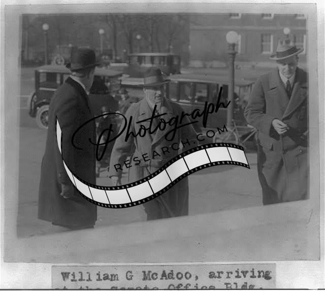 William Gibbs McAdoo,1863-1941,arriving at Senate Office Building,2 other men