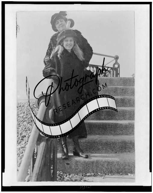 Clare Boothe Luce,her mother,on steps,outdoors,enroute to Europe,1914,Family