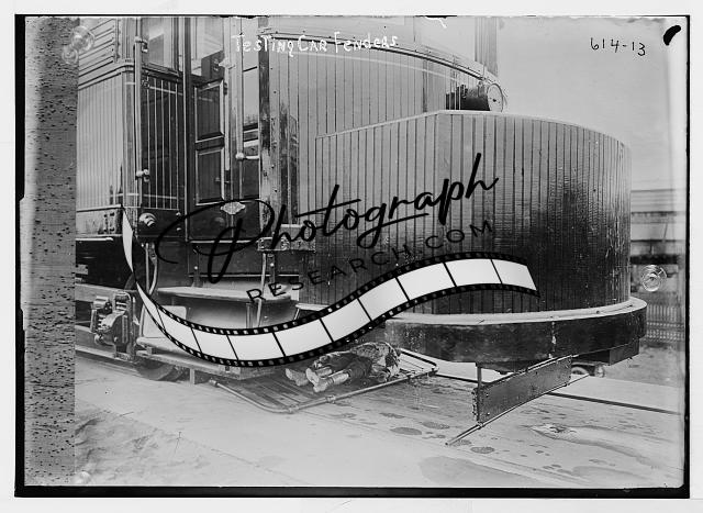 Testing car fender on end of railroad car,human body,locomotive,RR tracks