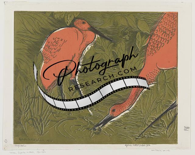Tropical, Print shows two birds wading; one is catching a frog., Weber, Sybilla Mittell, 1892-1957, artist