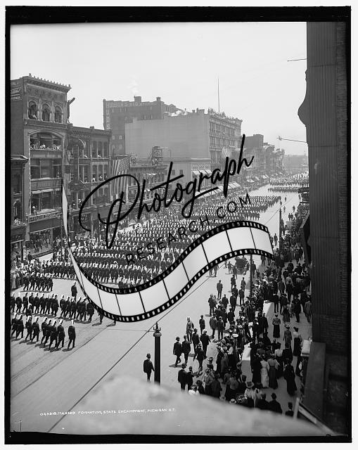 Massed formation,state encampment,Michigan Knights Templar,parades,roads,MI,1900
