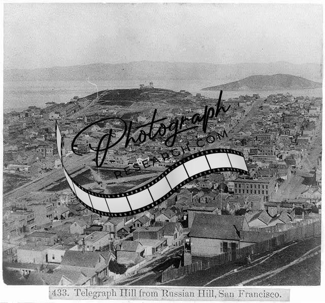 Telegraph Hill from the Russian Hill,San Francisco,California,CA,1866,buildings