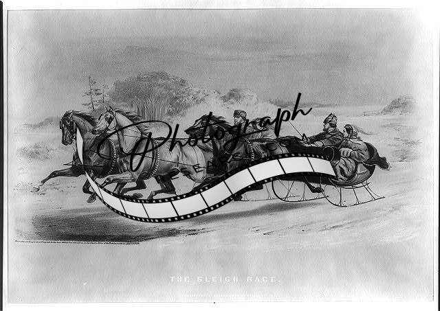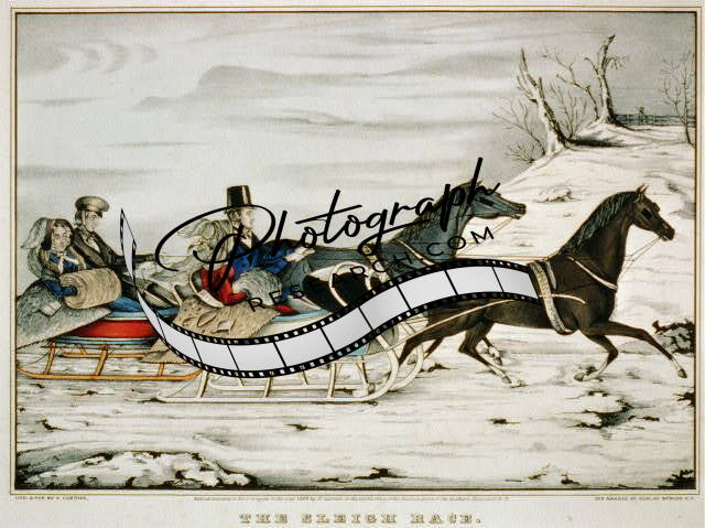The sleigh race,c1848,Horses,2 couples,snow,Currier & Ives Photograph