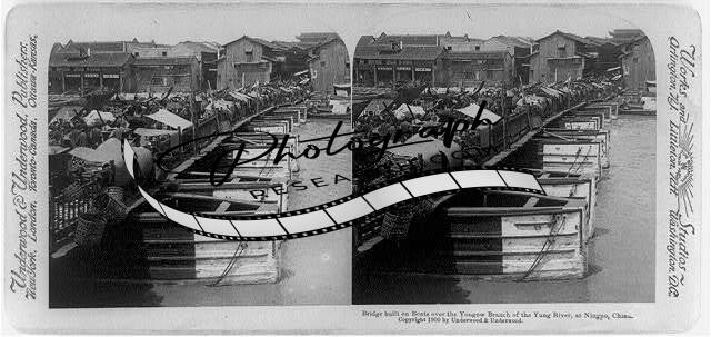 Photo of Stereograph,Bridge built on Boats,Yongow Branch,Yung River,Ningpo,China