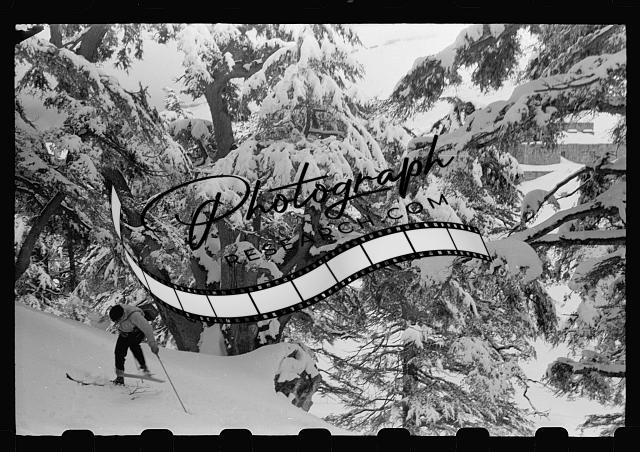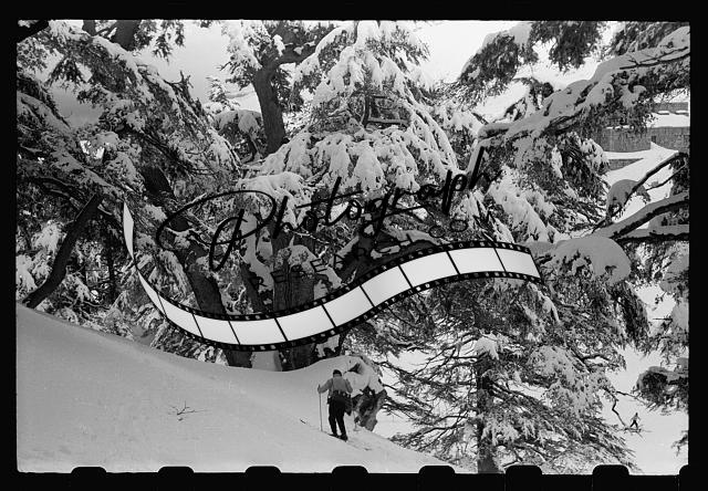 Cedars of Lebanon with snow,skiers,Snowy,Landscape,Nature,Skiing,March 1946,1