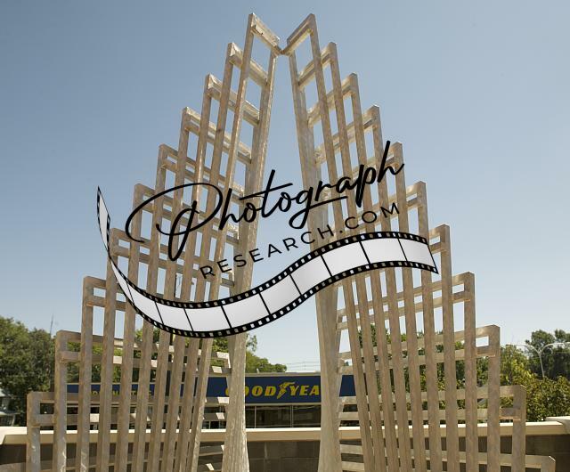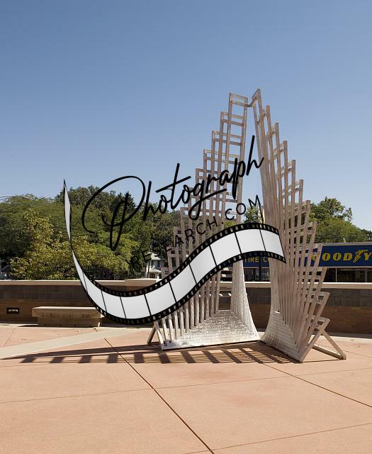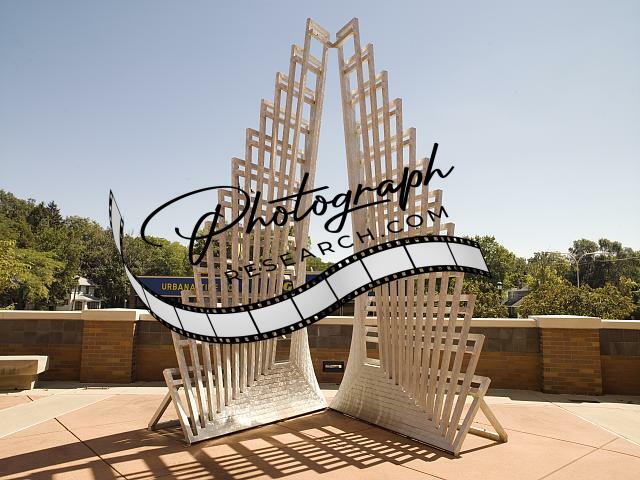 Title: Sculpture 'Sky Cathedral' at entrance plaza of Federal Building and U.S. Courthouse, Urbana, Illinois