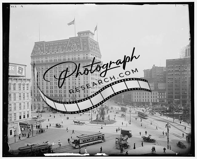 Campus Martius,plazas,buildings,street cars,roads,Detroit,Michigan,MI,1900