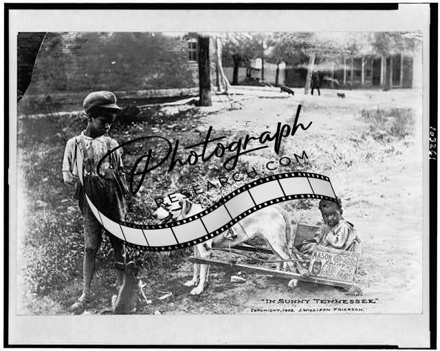 Sunny Tennessee,African American children,playing outdoors,dog,cart,TN,c1903
