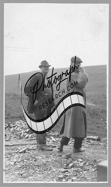 Unidentified Men near small pile of rubble in field,Chatanika,Alaska,AK,c1908