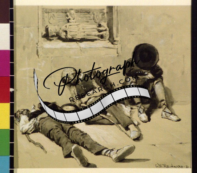 Men,boys slumber out of doors even in the hot sun,Charles Stanley Reinhart