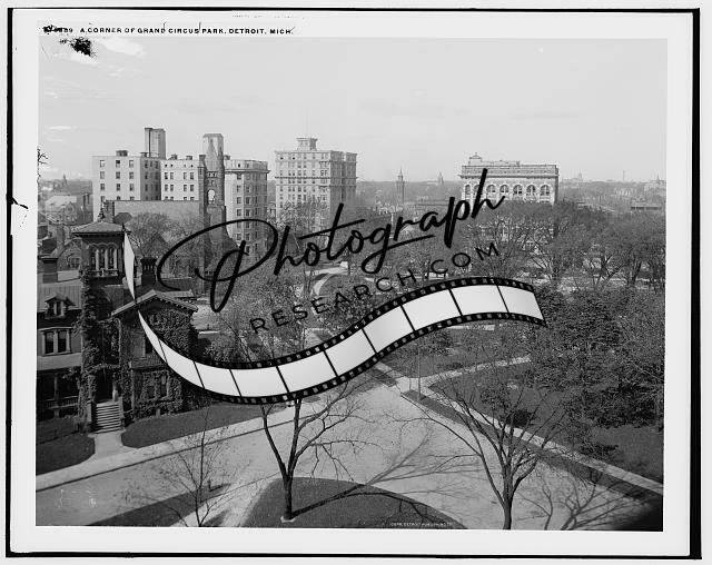 Corner,Grand Circus Park,buildings,paths,Detroit,Michigan,Publishing Co,c1908