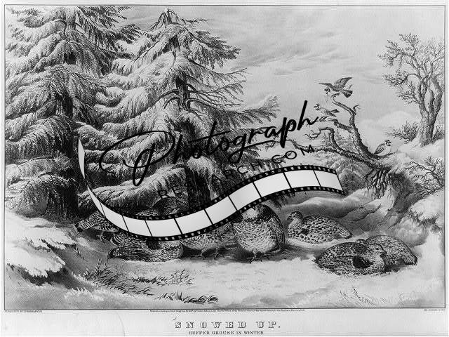 Snowed up: ruffed grouse in winter,c1867,Currier & Ives Photo,birds,trees