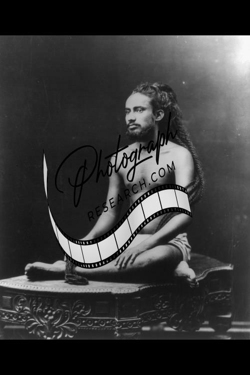 Priest sitting. India.South Asia,1890-1900,topless man,long hair