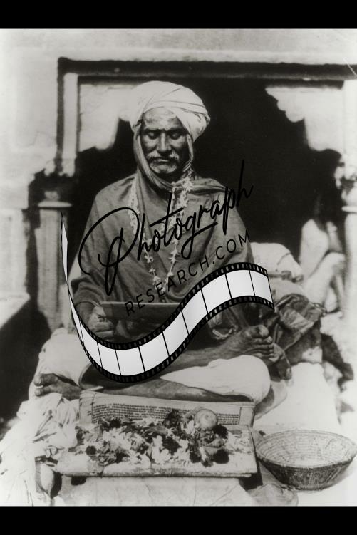 Priest sitting. India. South Asia,1902,reading,seated,basket
