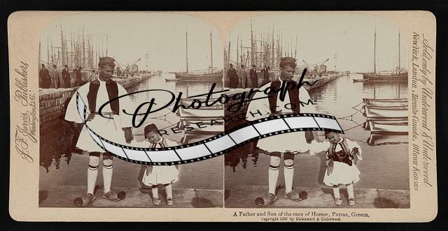 Mount Parnassos from illegible mayor,his wife in foreground,Greece