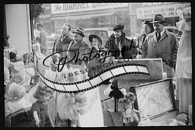 Title: Window shoppers watching toy display in downtown Providence, Rhode Island