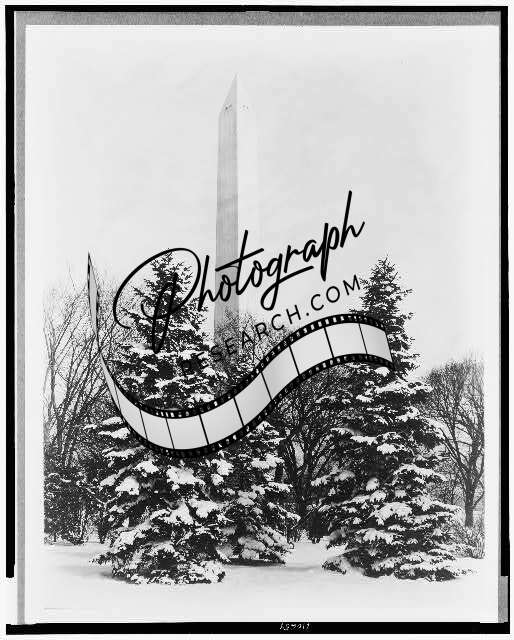 Washington Monument, snow-covered trees 1933, DC