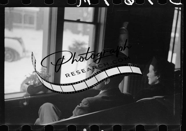 Guests in hotel lobby watching snowstorm,Chillicothe,Ohio,OH,Rothstein,1940