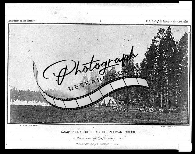 Camp near head of Pelican Creek,east of Yellowstone Lake,Wyoming,WY,1871,Tents